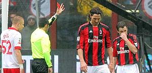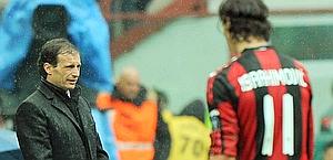 L'occasione perduta infastidisce dopo l'eliminazione In Champions. L'Inter resta a 5 punti, ma l'1-1 con il Bari è un piccolo campanello d'allarme perché mette a nudo un momento poco lucido della squadra. La vera nota stonata è però Ibrahimovic. Irriconoscibile con il Tottenham, come spesso gli capita in Champions, lo svedese si è fatto espellere per un colpo proibito a Rossi, mostrando un nervosismo che rischia di costargli il derby. "Purtroppo ha avuto questo mezzo fallo di reazione; eppure nel secondo tempo si era mosso meglio che nel primo - commenta Allegri -. Nervoso? Era abbastanza tranquillo, ha cercato di tornare al gol su azione che gli manca da un po' di tempo, non c'è riuscito ma deve rimanere sereno e tranquillo. Ha fatto tantissimo per il Milan e sta facendo tanto, possono capitare questi periodi, non deve innervosirsi". E il derby? "Vediamo...", conclude Allegri. Il tecnico livornese però non nasconde la sua rabbia e spiega i suoi motivi con precisi dettagli tattici: "Sapevamo che non era una partita vinta in partenza e l'abbiamo complicata giocando un brutto primo tempo; poco mobili, poca profondità, abbiamo allargato poco il gioco, cosa che abbiamo fatto meglio nel secondo tempo. Sono partite in cui devi avere la sicurezza difensiva e invece sul gol del Bari ci siamo un po' addormentati. Quando parte un uomo bisogna seguirlo e bisogna stare più svegli anche sul primo uomo in barriera". Nella ripresa, dopo la strigliata nella pausa del té. il Milan è cresciuto. "Nell'intervallo ho detto di cominciare a giocare, di allargare il gioco, mantenendo quella serenità che serve per affrontare una partita di calcio" racconta Allegri che invita i suoi a mantenere la calma di chi comanda il campionato: "C'è amarezza, dispiacere - spiega -, questa settimana però dobbiamo vederla in maniera positiva nel senso che abbiamo giocato due partite ottime, anzi diciamo una e mezza visto il primo tempo di oggi, raccogliendo meno di quanto potevamo raccogliere". Resta il fatto che se non ci fosse stato Cassano staremmo qui a raccontare un clamoroso flop. "Queste partite alla fine rischi di perderle - ammette il tecnico che vede il bicchiere mezzo pieno - La squadra in dieci ha pareggiato, ha avuto anche l'occasione per vincere, dispiace. Tutti si aspettavamo, compreso me, una vittoria che avrebbe allungato la classifica, ma abbiamo sempre 5 punti di vantaggio sull'Inter che non sono pochi a questo punto del campionato".